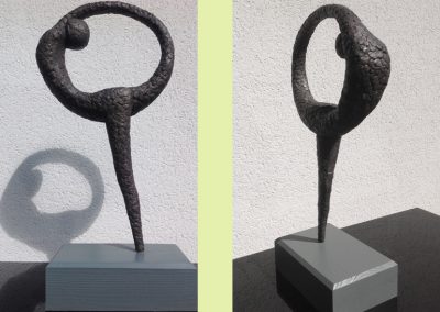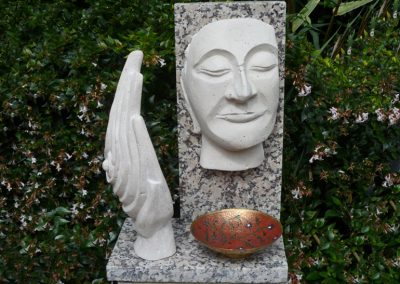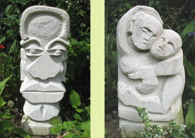 I enjoy carving stone and light weight concrete blocks, working in ciment fondu and portrait work in clay. More recently I have been exploring the beautiful shapes and structures of the natural world around us and have tried to recreate elements of this in my work.