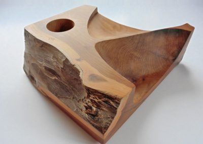 He has worked with wood, stone, sheet metal and perspex, ciment fondu, and resin, using both carving and casting techniques.