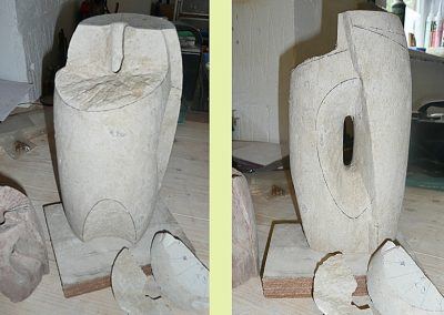 His first piece of work was necessarily in stone, as he had not appreciated that sculpture involved more than carving and felt most comfortable handling a material somewhat akin to solid concrete.
