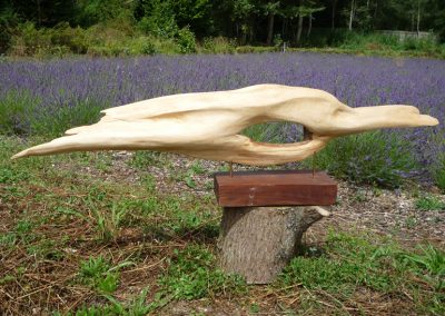 He used the natural material of wood to capture, in an abstract form, the movement of flight and the leaping of dolphins. We will miss his gentle presence at the studio and his wry sense of humour.