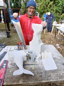 Our tutor for this workshop saw the welcome return of Will Davies, a sculptor of 20 years of experience who has worked as Head Stonemason at Winchester Cathedral.   All attendees thoroughly enjoyed the day and the weather was kind enough to allow working outside.  You can see how successful their lovely carvings were!